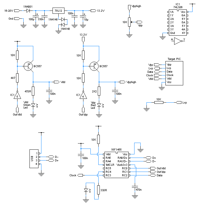 USB Pro PIC-PIC18-PIC16 Programmer schematics (16F1455):